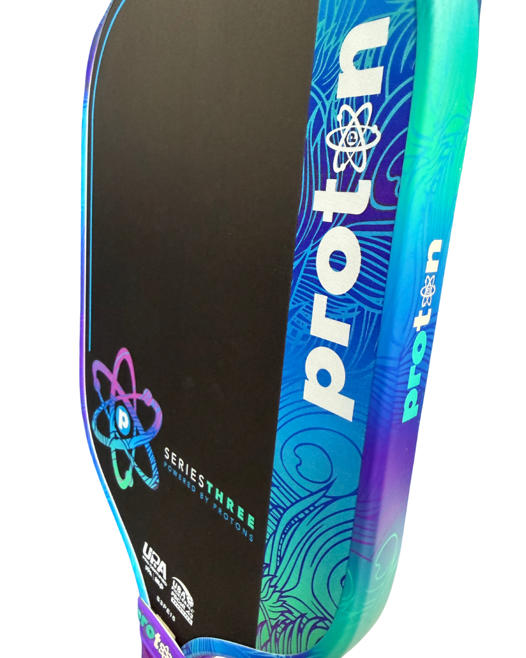 Are you ready to add some flair to your game? Introducing our latest innovation in the Series Three family, the Project Peacock. This paddle features our high-density Atomic foam core, giving you a lightweight, durable construction engineered for optimal responsiveness. Get ready to experience more feel with longer dwell time, all without sacrificing power.