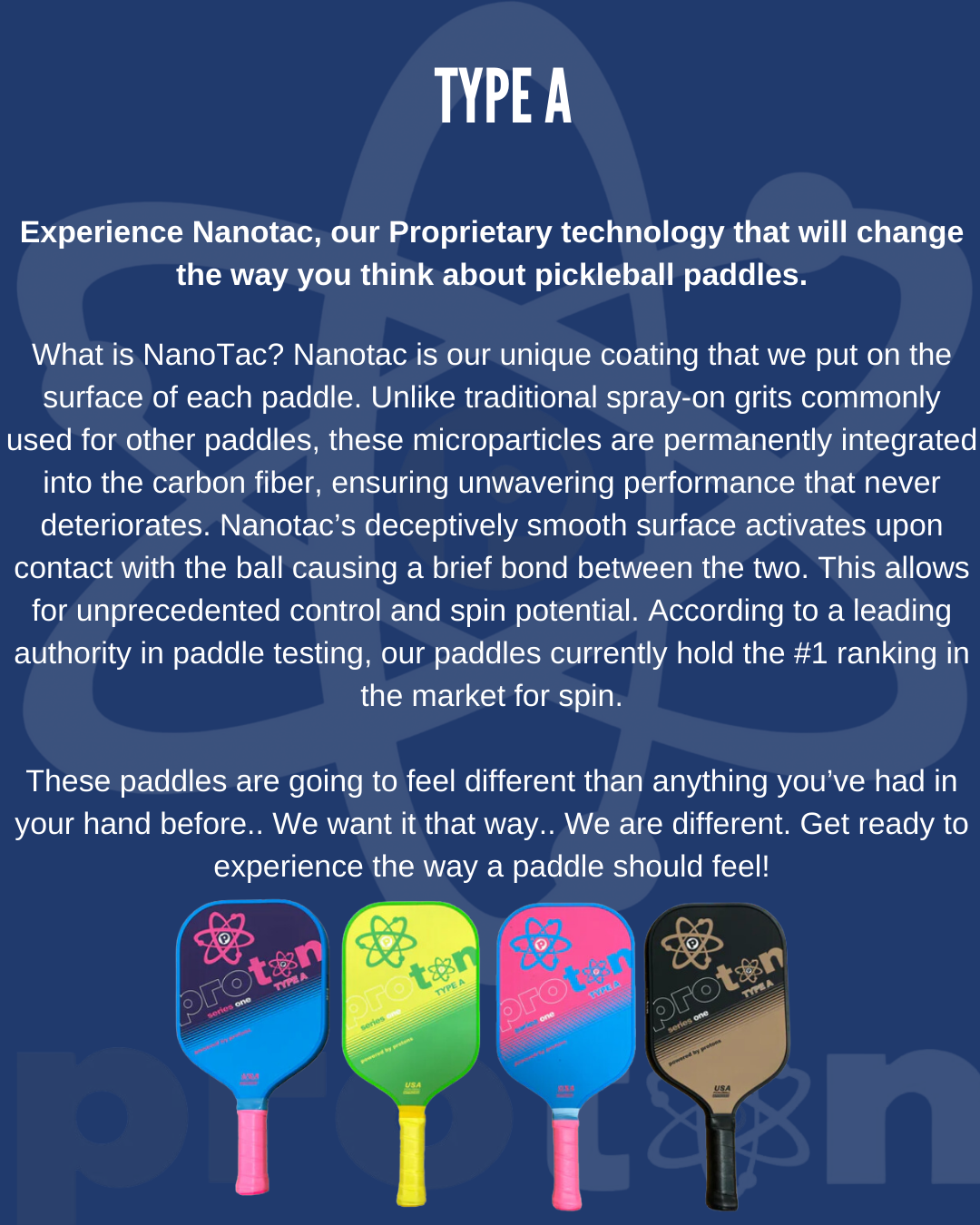 Made from the same exceptional carbon fiber as our softball bats which are made to withstand impact with hard balls at 100+ MPH exit velocity thousands of times. This makes for an incredibly resilient, high performing, great sounding, incredible feeling, and long lasting paddle. All Proton products come with a 100% You’ll Love it Guarantee, if not send it back. Our Paddles have been on-court tested for months by players at all levels with the consensus being that this is a must have paddle.